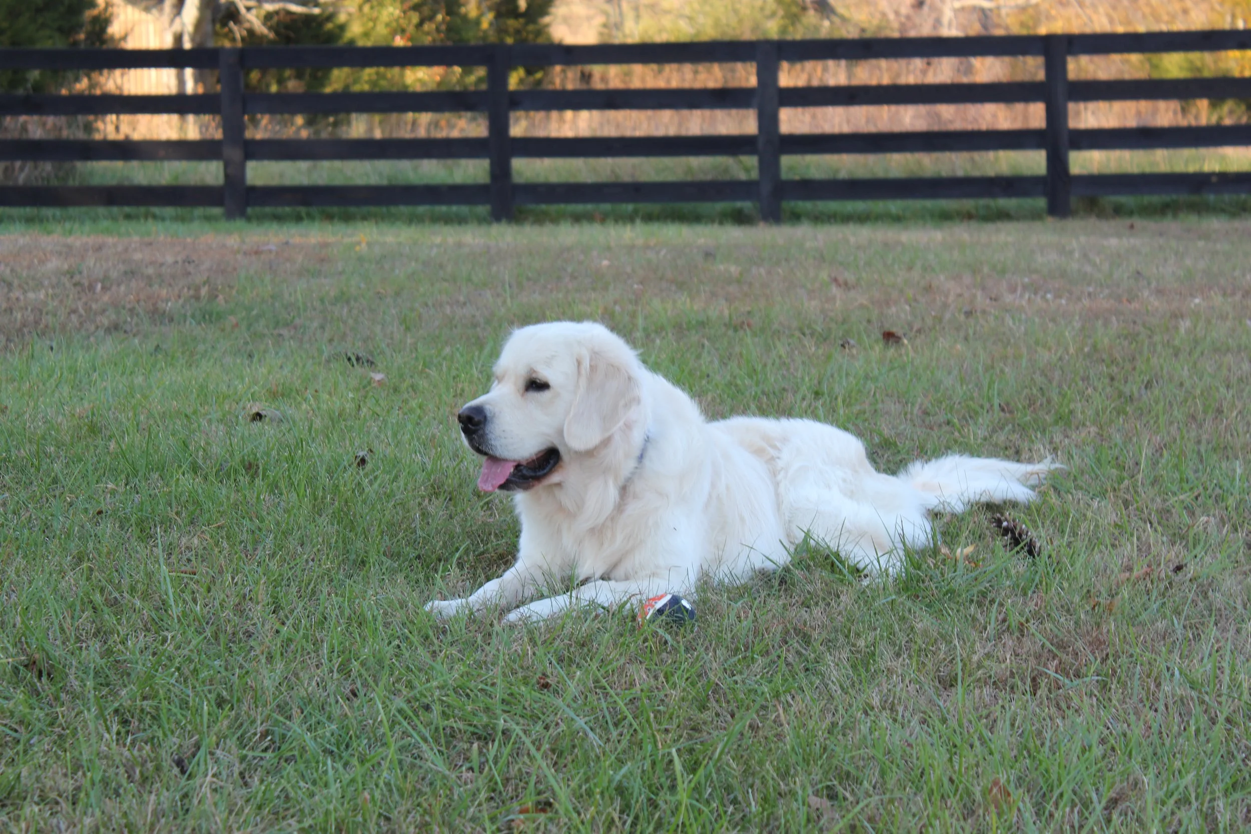 Buck has an amazingly kind and soft temperament, and has the look of a champion in his stance, walk, and fluffy plume tail. He is very athletic and loves to chase balls, swim, and run in the field beside our house.